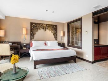 Когда его не было, решить что-то с тайцами-нереально!!! Хотя я могу объяснить суть на английском языке, ничего не помогало. Полдня ждали тайна, чтобы он пришёл и поменял батарейку в сейфе. Неоправданно завышенная цена на завтраки. Старый номерной фонд, мебель обшарпанная, сантехника прошлый век.