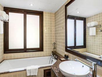 Разве вы ожидаете от гостиницы 5* увидеть разрушенные лестницы и отсутствие таковых, запустелые и заброшенные помещения, и территории заросшие как в джунглях, с неприятным запахом, загустевшую от хлорки воду в основном бассейне, и моющих обувь отдыхающих азиатских друзей в других бассейнах? В номерах всё старое, ободранные обои, разболтанный кран в раковине, зацвевший пол в ванной.... Завтраки скудные, 2 вида сосисок и одно блюдо из рыбы, рис, яйцо,овощи, хлеб, чай кофе, арбуз, ананас. Отсутствует обещанный шатлбас , без своего транспорта жить там нереально. Этот отель не соответствует категории даже 3*, хотя когда то он был видимо хорош. Отель требует капитального ремонта, фотографии не передают убогости обстановки...