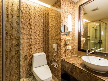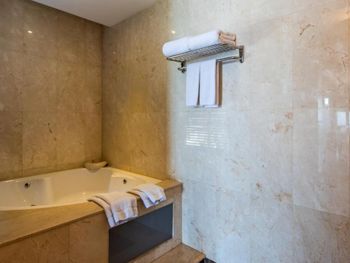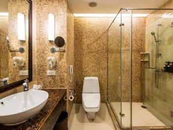 Балкон большой, курить можно. В номере также есть довольно большая ванна: я довольно крупный, но поместился туда без проблем, еще место оставалось. Совет захотевшим искупаться в ней: в отеле используются, по-видимому, проточные нагреватели, поэтому для того, чтобы пошла горячая вода в душе или в ванне, нужно дать ей попроливаться минут пять.