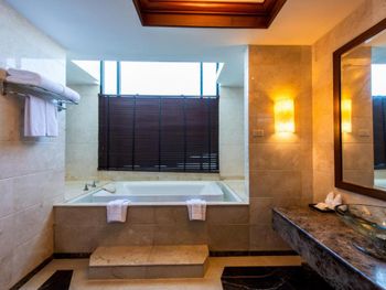 Разве вы ожидаете от гостиницы 5* увидеть разрушенные лестницы и отсутствие таковых, запустелые и заброшенные помещения, и территории заросшие как в джунглях, с неприятным запахом, загустевшую от хлорки воду в основном бассейне, и моющих обувь отдыхающих азиатских друзей в других бассейнах? В номерах всё старое, ободранные обои, разболтанный кран в раковине, зацвевший пол в ванной.... Завтраки скудные, 2 вида сосисок и одно блюдо из рыбы, рис, яйцо,овощи, хлеб, чай кофе, арбуз, ананас. Отсутствует обещанный шатлбас , без своего транспорта жить там нереально. Этот отель не соответствует категории даже 3*, хотя когда то он был видимо хорош. Отель требует капитального ремонта, фотографии не передают убогости обстановки...