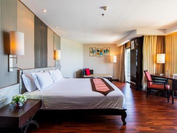 Расположение от города далеко. На сайте booking.com не правильная информация о трансфере в город. Ездят меньше и последний раз вернуться из города можно только в 19-15. Пешком ходить 2,8 км, что долго. Такси 200 бат. Если хотите много гулять в городе или закладывайте бюджет на такси или другой отель берите. Завтраки очень дорогие. Неадекватно просто. При выезде долго ждать пока посмотрят и проверят номер, это минус. Пляж очень маленький, лежаков нет, кроме 3 матрасов. Все остальное занимает соседний отель Модус. Купаться - без проблем, а вот полежать надо наверху будет.
