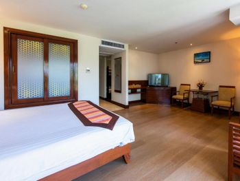 Когда его не было, решить что-то с тайцами-нереально!!! Хотя я могу объяснить суть на английском языке, ничего не помогало. Полдня ждали тайна, чтобы он пришёл и поменял батарейку в сейфе. Неоправданно завышенная цена на завтраки. Старый номерной фонд, мебель обшарпанная, сантехника прошлый век.
