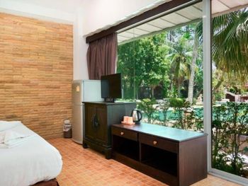 Отличное месторасположение, если арендовать байк). Очень тихо, спокойно, чистый бассейн, ухоженная большая зелёная территория. Много семей с детьми. Байк брали от гостиницы 200 бат в сутки, просят оставить паспорт.