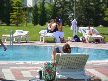 Нет вывесок на английском. В бассейн требуют надевать шапочку. Видно, что отель не новый.