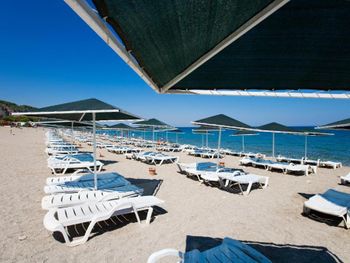 В номерах не убирают от слова совсем, только меняю полотенце для ног в душе и пепельницы на балконе Еда ужасная и однообразная. Отель заявляет себя как 4 но не дотягивают совсем, обычная 3. На пляже шезлонгов хватало но пляж в плачевном состоянии и вообще это сложно назвать пляжем для хорошего и комфортного отдыха.