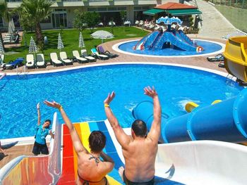 Питание, напитки. Море грязное, мусор природного и не природного происхождения. Снек бар возле 5-6 корпуса не работал, снеки только на баре возле пляжа. Бар на пляже работает только до ужина. Анимация. Коктейли платные, сейф платный с депозитом. Пляжные полотенца можно поменять и сдать только с 9:30 до 12:30. Бронировали на 4 дня, за это время принесли 2 куска мыла, 2 шампуня. Геля для душа и тапок не было. Юмор персонала надоел на первый день. Плохая шумоизоляция, слышно как в соседнем отеле весело. Основные клиенты взрослые и пожилые с детьми, внуками.