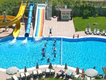 Бесплатный интернет, зелёная территория, водные горки, много десертов, свободные лежаки из за незаполненности отеля, поэтому быстрое заселение.