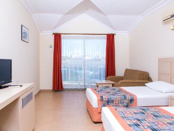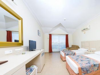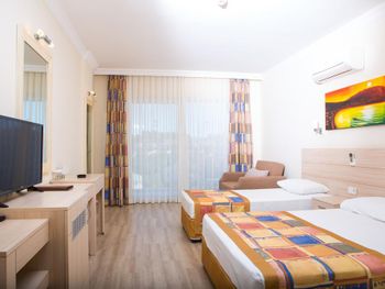 Отель расположен в бухте Жустианос, в 30 км от г. Алания, в 100 км от аэропорта Анталии.