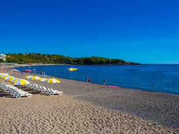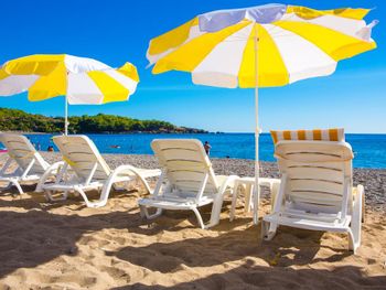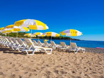 Собственный песчаный пляж в 50 м; шезлонги, зонтики – бесплатно, матрасы- платно.