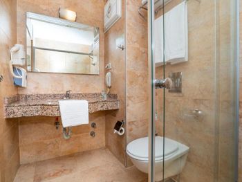 Мы обычно не пишем отзывы, но думаю эта информация должна быть заранее. Тогда вы будете хотябы морально готовы к следующим неудобствам. Все напитки платные, не только алкоголь, мы бронировали два номера с завтраками так как мы семья с тремя детьми, мы думали нам не нужен олинклюзив и брали у них обед 21 евро, ужин 30 евро. Каждая чашка чая и воды была записана, отменили по великой милости. На последний ужин разрешили два стакана чая бесплатно на семью, что думаю не правильно. В номер каждый день выдают только по одному литру воды. Пришлось ходить в ресторан со своей водой из магазина. Следующий минус, персонал не говорит по русски, зато все говорят по немецски, это рай для их пенсионеров. Вечером до выезда когда я стал заранее загружать часть багажа в свою машину, сотрудники в ультимативной форме потребовали оплату за последний ужин, я им говорю что отъезд у нас завтра утром, все семья в отеле, дайте хотя бы возможность нормально припарковаться. Пришлость с открытым багажником, вещами на улице, с закрытым проездом для других авто идти оплачивать этот ужин. По этому мы сильно ошиблись в выборе отеля.