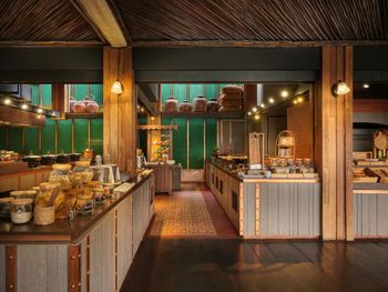 Гости могут насладиться трапезой в ресторане Rhoy Rhoy! ресторане, ресторане Fish Tales, ресторане EVOL, а также в пляжном баре и бистро Po Lad. Существует также тематический ресторан, который открыт в высокий сезон. На протяжении всего дня гостям предоставляется питьевая вода.