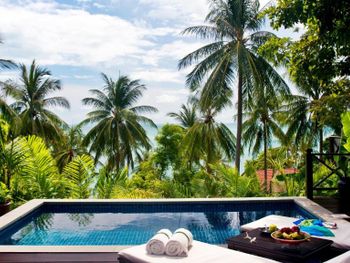 Номера на склоне холма и виллы с бассейнами - это по сути настоящие тайские домики из которых открывается потрясающий вид на бухту. Но самое главное - это ощущение единения с природой, выходишь на балкон, а вокруг тишина, только звуки природы, невероятные виды и чистейший воздух.