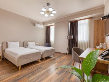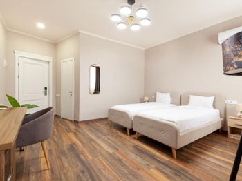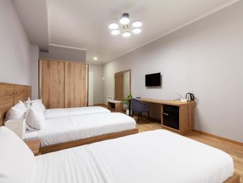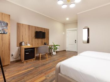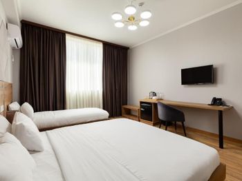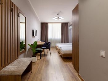 Очень уютный и приятный отель. Прекрасное расположение - очень близко к центру, но при этом во отеле тихо (до этого останавливались в другом отеле -вообще не могли заснуть от шума и сигналов машин). Есть прилегающая территория, как в санатории. Внутри все новое, красивый холл, ресепш, зоны отдыха. Внимательный и отзывчивый персонал. В отеле оперативно ответили на наш запрос. По приезду заселили заранее. Когда в отель приехали другие гости (с очень шумными детьми) - пошли нам на встречу, переселили в другой номер (классом выше). Всё оперативно, дружелюбно, с улыбкой. Очень вовлечены и доброжелательны к гостям. Завтрак в ресторане на первом этаже. Красивый аутентичный зал.
