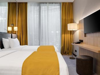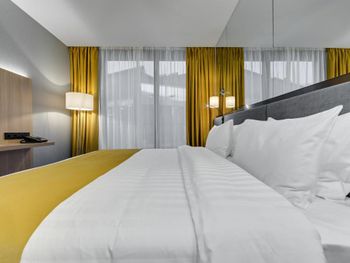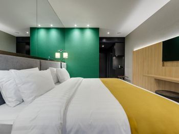 При заселении выяснилось, что в наш номер и по нашему коду бронирования уже заселили кого-то другого. После долгой дороги нам пришлось еще 40 минут сидеть в лобби и ждать пока решат проблему которую они сами и устроили. В номерах изоляции от звука на улице нету совсем. Слышно каждый пук который происходил на улице. Спать было не возможно