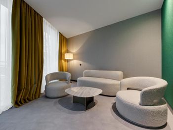 Отличная локация несмотря на то, что вокруг много кафе и баров в номере достаточно тихо. Шумоизоляция хорошая. Отель стильный, персонал приветливый и заботливые (кроме ресторана). Климатическая система работает хорошо, в голову не дует, не шумит. Площадь номера с небольшим балконом для отеля 5* наверное маловата, как и санузел. Завтраки очень добротные, разнообразные, вкусные, деликатные. Девушки на ресепшене внимательные, сразу же по просьбе забронировали место в соседнем баре. Звонили заранее и предупреждали о выезде.