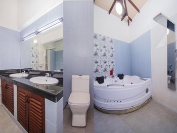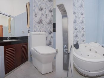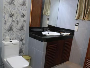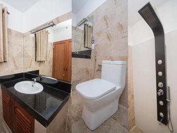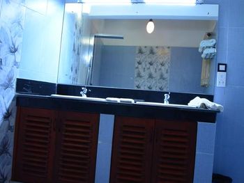 В ванной ночью увидел огромного таракана, около ванной маленького (номер 121). Утром нас переселили в другой номер. Владелец заверил, что это недоразумение и номер находится под контролем.