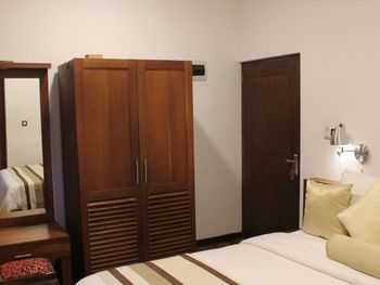 Старая мебель, земляного цвета постельное белье и полотенца, грязные стены в ванной, хлипкие двери с огромными щелями на балкон, отчего слышимость была аналогичной открытым дверям, отель находится на очень оживлённой шумной улице, ночью спать было невозможно. Если бы не был забронирован номер с безвозвратным тарифом, не раздумывая переехали бы. Я даже при заселении перечитала отзывы, думая, что ошиблись с отелем. Этот отель был пятым по счёту и завершающими наше путешествие, к сожалению смазал весь отдых, до него все варианты проживания в разных точках острова были гораздо комфортнее, приятнее, чище и некоторые даже дешевле( из уважения к ланкийцам не хотелось писать отрицательный отзыв, но может туристам будет полезен при выборе из огромного количества предложений