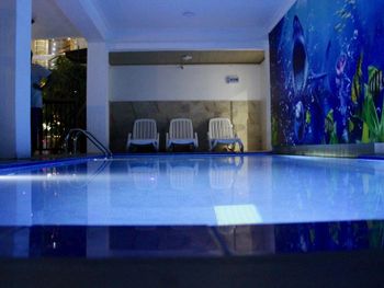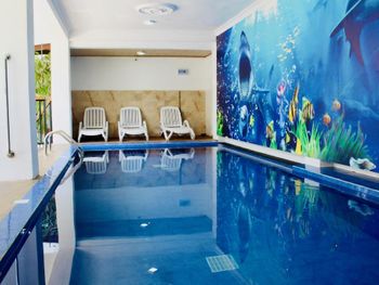 Номер на 2 этаже (там где столовая) , по утрам очень шумно, такое чувство что дверей нет, местные очень громко разговаривают между собой. В бассейн так и не ходили, уж очень странное расположение бассейна (на первом этаже около дороги) да и размер очень маленький...