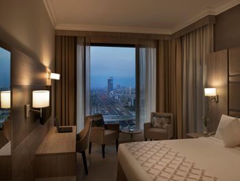 Хороший ремонт номера, хороший вид с 38 этажа. Много быстрых лифтов. Для меня удачное месторасположение.