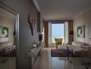 Просторные апартаменты с кухней и двумя спальнями. В номере у нас была стиральная и посудомоечная машина. Наш номер был 0904. Сами можете увидеть какой вид из окна. Можно было конечно пойти сказать, что не нравиться и бла бла бла. И номер бы поменяли. Но видимо, для меня это не было принципиально, поэтому мы остались в этом номере. Прямо рядом с отелем метро. Это конечно плюс. Даже с аэропорта можно доехать на метро до отеля. На пляж возят 2 раза в день. Причём это два разных пляжа. На пляж в районе Дубай Марина в 9:00. Забирают в 13:00. На пляж рядом с отелем Парус в 10:00, забирают в 14:00. Интернет работал хорошо. Неплохая тренажёрка. Матрасы удобные, постельное белье меняли практически каждый день. На этом плюсы закончились. Рядом есть магазины. Но ценник на продукты завышен, так как рядом нет огромных гипермаркетов. В общем если вы не очень требовательны, то Велком. Но я ещё раз в этот отель не поеду. Если не принципиален город. Рассмотрите как вариант Абу-даби. Мы два года подряд останавливаемся в отеле Al Maha Arjaan by Rotana. Да и продукты в Абу-Даби дешевле.