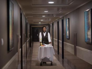 Невероятно медленное обслуживание заезда и отъезда. В очереди простояли оба раза по 30 минут. Что то не то с системой оформления гостей! Горячую воду надо ждать 10 минут! Лифт ждать надо 10 минут минимум. Редко когда меньше! Обслуживающий персонал не дозовешься - надо звонить и надоедать! Резюме - очень большой отель - 41 этаж и менеджмент в том виде в котором есть явно не справляется с таким объемом!