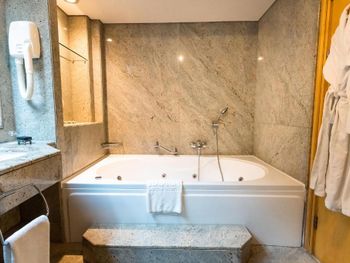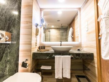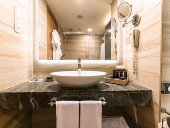 При въезде заселили в номер для маломобильных групп населения, хотя при бронировании (через booking.com) я не указывала на потребность в таком виде номера. Сутки пришлось ждать переселения.