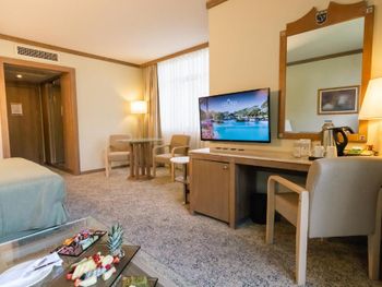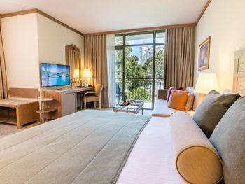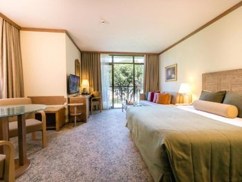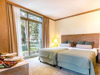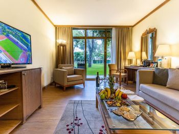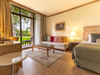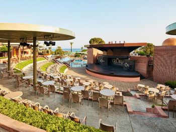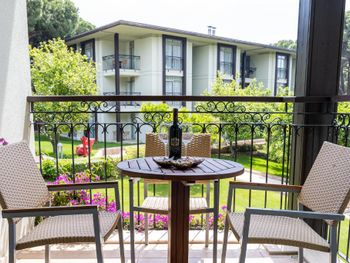 Основное здание отеля представляет собой небольшое, 5-этажное здание на 200+ номеров, на территории расположены также несколько вилл. Просторные, чистые номера, большая, зеленая территория. Несмотря на полную загруженность отеля, на пляже и рядом с бассейнами всегда были свободные лежаки. Большой ассортимент блюд на завтраке/обеде/ужине. Во время завтрака и ужина дополнительно на улице была задействована станция гриля, работала отельная стойка с бариста. По системе "все включено" помимо основного ресторана со шведским столом, пообедать можно было в двух снэк-ресторанах, и поужинать в двух "a\'la carte" ресторанах, запись в которые осуществляется за несколько дней на стойке ресепшен (ограничение: ужин в каждом ресторане раз в неделю). Ежедневная смена полотенец и пополнение бара в номере. Смена белья через день. Любезный, внимательный персонал. Программа разнообразных активностей для взрослых и детей в течение дня. Водные горки на территории отеля. Возможность посещать территории других двух отелей сети и гольф-клуба на организованном бесплатном трансфере. Пляж песочный, но вход в море с мелкой галькой.