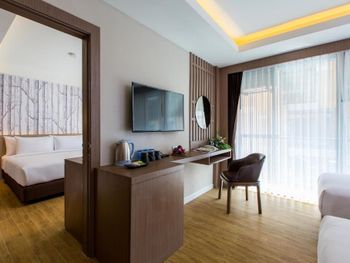 Размер четырехместного номера - это ужас. Конкретно четырехместный номер - это просто двухместный номер, в который поставили еще одну кровать. Там негде сесть, негде пройти. Номер подходит только, чтобы переночевать. Я заплатил за 4х местный номер большие деньги, непосмотрев на площадь номера. Оказалось, что площать всего 30м2. За эти же деньги в Аонанге можно снять квартиру площадью 110м2.