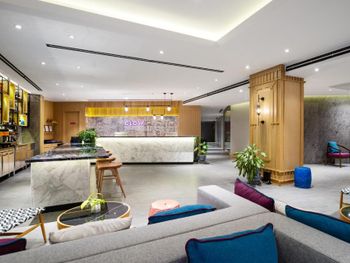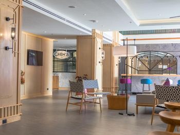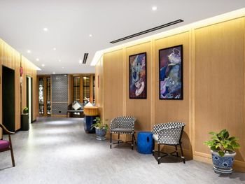 Красивая зона ожидания. Современный, новый отель. Чисто, есть наборы полотенец для пляжа.