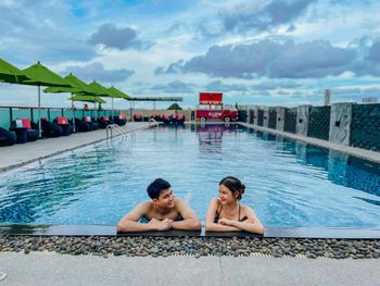 и вся эта смесь тусуется в бассейне - с детьми не очень комфортно там находиться