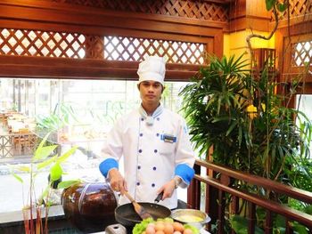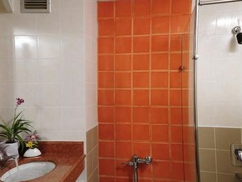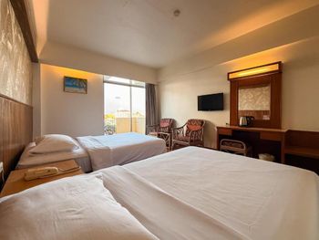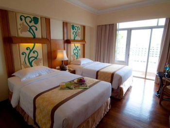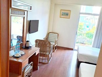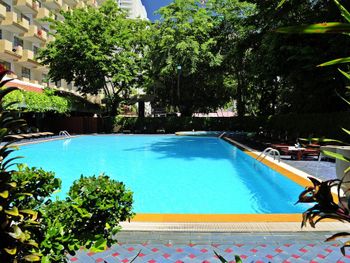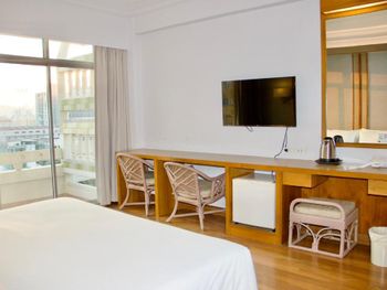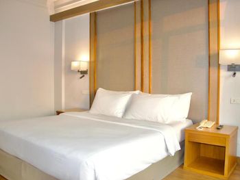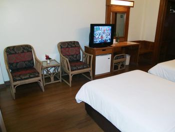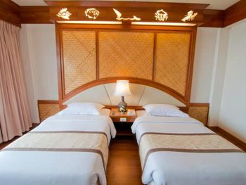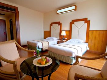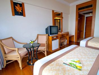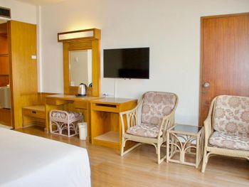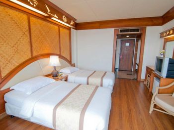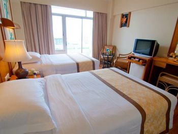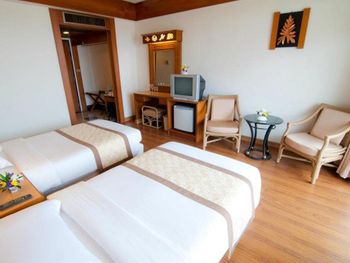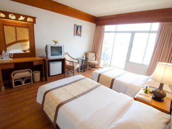 Отель давно морально устарел.Отели этой категории стоят процентов на 30 дешевле.К сожалению не во всех отелях в центре есть номера с двумя кроватями,поэтому выбор несколько ограничен.В номерах по необходимости сделан ремонт,в частности поменяны ванны.Уборка по тайским меркам нормальная))Смена полотенец каждый день,постельного белья 1 раз в 3 дня(все чистое,без пятен)Скромные завтраки.И не было ни одного не штопанного пляжного полотенца.Кондиционер работает очень даже хорошо,но терморегулятор не очень,поэтому в номере холодно.Приходилось то включать,то выключать его(кондиционер) В этом отеле второй раз и в первую очередь из-за местоположения(центр города и с видом на бассейн ночью в номерах тишина)По приезду заселили с видом на сторону кафе,хотя я сразу попросила дать номер с видом на бассейн.Согласились пересилить ,но только на следующий день без проблем и доплаты.Очень вежливый и дружелюбный персонал.Твердая тройка.