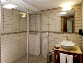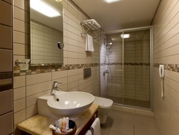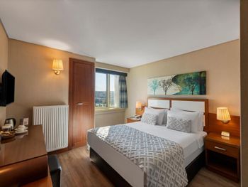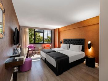 очень маленький номер. выходишь из душа, вытираешься, а у тебя полотенце практически в унитазе. находится рядом с достаточно оживленной улицей, поэтому постоянный шум от гудков машин очень мешает. однообразное скудноватое питание. при бронировании было указано, что бесплатная кровать для ребенка предоставляется при наличии, кровать поставили, но сотрудник на ресепшне говорил о том, что обычно кровать стоит 20 евро в сутки, а это он нам сделал бесплатно, видимо намекая на чаевые. цена немаленькая, простил бы эти недостатки, если бы было дешевле.