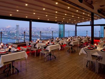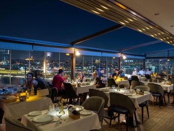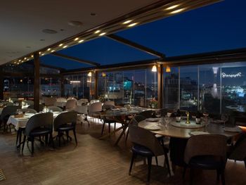 На 11 этаже работает ресторан изысканной кухни, в котором сервируют завтрак, обед и ужин. На открытой террасе ресторана подают сытные блюда — стейки, морепродукты и пряное тушеное мясо.