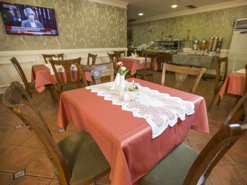Завтрак оказался очень скудным и совершенно неразнообразным. В номере — старая мебель, изношенная до предела, стены настолько тонкие, что слышно каждое движение соседей. Обстановка в целом требует ремонта, всё выглядит уставшим и непривлекательным. Вдобавок были замечены тараканы, что делает пребывание крайне неприятным. Шум с улицы и из коридора мешал нормально отдохнуть.