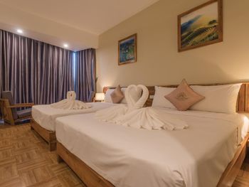 Отель вроде и новый, но выглядит немного несвежим. Ремонт не делают. Понятие об уборки в номере у них «вьетнамское». Если не стоять над душой и не показывать где грязно, они просто махнут веником и уйдут, даже не сменив постель.