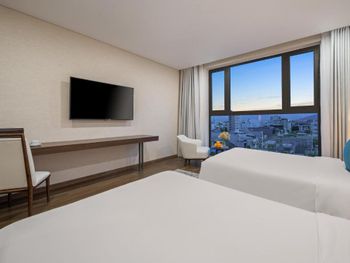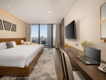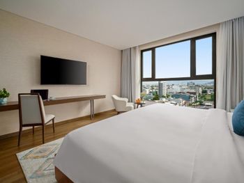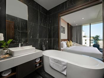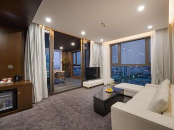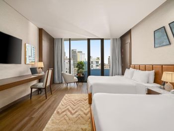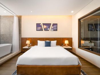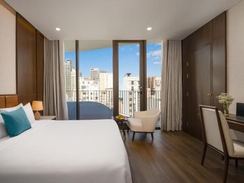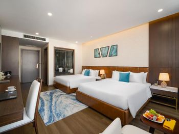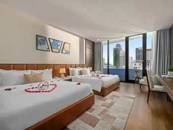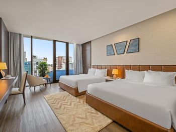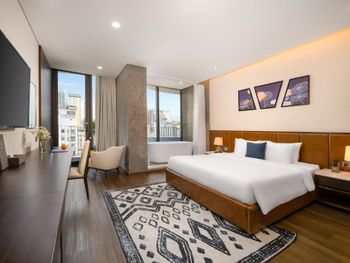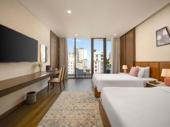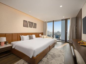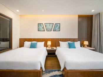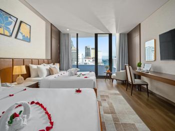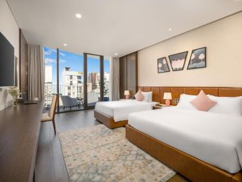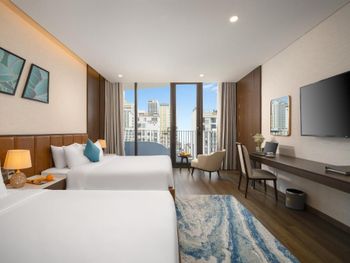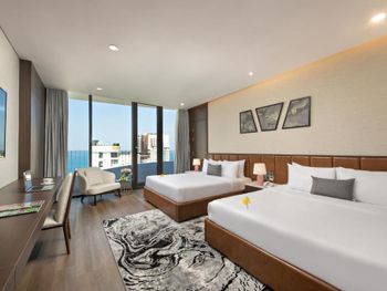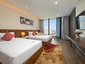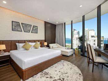 Вначале забронили 3 ночи в люксе, нам их проапгрейдили до президентского, потом решили остаться на неделю, в итоге 2 недели жили в этом отеле, расположение класс, до моря минут 5,7 пешком, рядом магазины и кафе, персонал отзывчивый, особенно молодой парень кто всегда открывает двери нам, всегда улыбался и помогал, да и в целом персонал молодцы, всегда готовы помочь, если будем в Дананге, то только сюда.