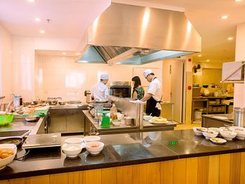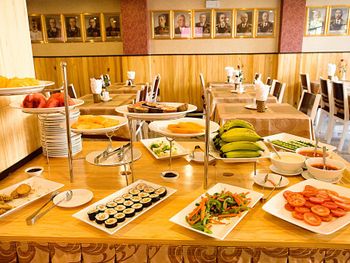 Если выйти на набережную и повернуть на лево,то 10 минут пешком и там в торговом центре на 3 этаже каждый день шведский стол за 10 евро. Там неограниченно пиво и любая еда ,устрицы,крокодилы ,лягушки и все что угодно. Супы ,фрукты и все там есть. И притом можно выходить от туда курить и заходить обратно ,хоть целый день.