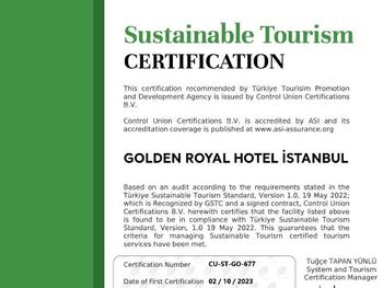 Golden Royal Hotel & SPA — это отель в городе Стамбул, в менее чем 1 км от такой достопримечательности, как Голубая мечеть. К услугам гостей услуги консьержа, общий лаундж, бар, а также бесплатный Wi-Fi на всей территории. Также предоставляются гипоаллергенные номера. За дополнительную плату может быть предоставлено место на частной парковке. В распоряжении гостей доставка еды и напитков, круглосуточная стойка регистрации и услуга обмена валют.