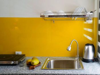 Был чайник, чашки, кондиционер и холодильник.