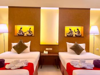 Отдыхаю в этом отеле не первый раз. Всё как всегда на уровне. "Цена-качество" До пляжа неспешным шагом 10-12 минут. Вся инфраструктура в шаговой доступности. Номера немного староватые. Но учитывая цену на это можно закрыть глаза. Так что отель для непритязательных путешественников без детей, так как район Сои Букхао говорит сам за себя. Завтраки в отеле приличные всего хватало. Не для гурманов конечно но повторюсь ещё раз это не Hilton При отъезде немного огорчил штраф за пляжные полотенца, которые мы должны были оставить в комнате , а не отдавать "румбою", а времени доказывать правоту совсем не было т к такси уже ожидало на ресепшн. Поэтому будьте внимательны и оставляйте перед отъездом все в комнате и не повторяйте нашу ошибку. И ещё лучше селиться во второй или третий корпус так как у первого корпуса пристроили go-go bar и поэтому в номерах выходящих окнами в сторону улицы может быть шумно.