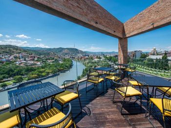 Мне понравилось и нравится вид прекрасной реки Кура и города Тбилиси. Панорамные окна. И я оплатила ещё 2 дня на ресепшене . Потом планирую подняться на мансарда крыша с балконом обзорная посмотреть на город с высоты