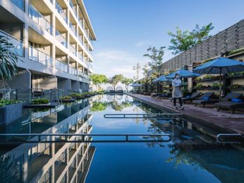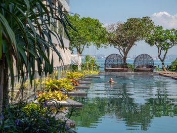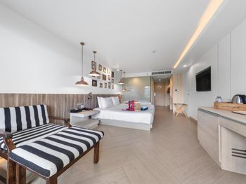Добротный отель. Есть свой комфортный пляж. Большой балкон с которого прекрасный вид на море и на храм. Отель в конце улицы, минут 10 пешком от ночного рынка и магазинов.