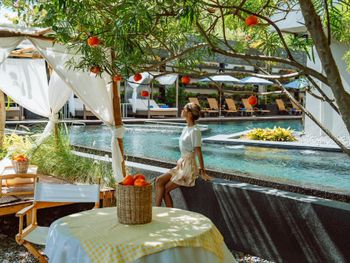 Бесплатный Трансфер до центра , красивое место с видом на храм и море. Номер с балконом. Завтрак обычный , хороший шведский стол.