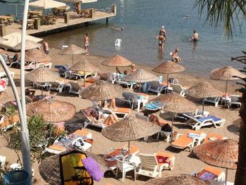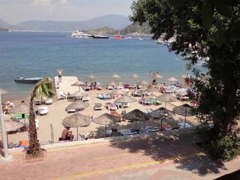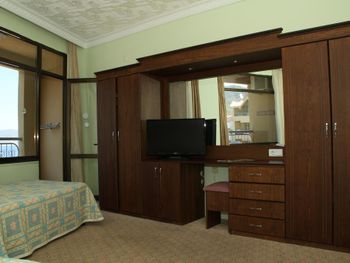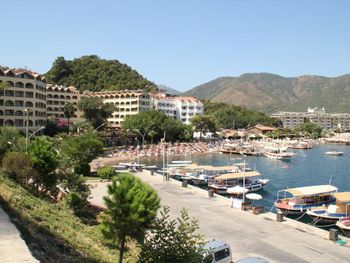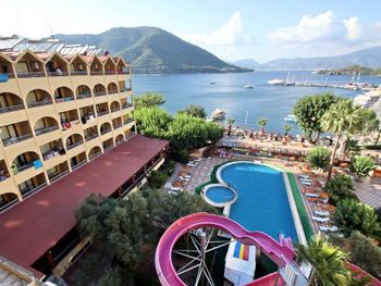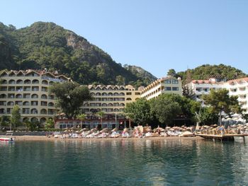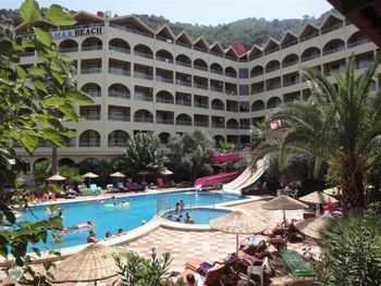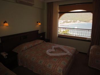 Мы были удивлены , что при заселении нам объявили , что кондиционер платный по 6 евро в сутки, это конечно нонсонс, мы много путешествуем и не особо придирчивые туристы, но когда услышали про платный кондей, то не много огорчились! Ну, я считаю лучше не много поднять цену за номер и сделать его бесплатным ?! Номера , да как и писали ранее , старенькие и мебель не новая , но мы ехали именно на отдых и море, и понимали, что нам это не принципиально! Номера все одинаковые , маленькие, но в принципе вся Европа такая, хотя мы были в Турции , но она сравнивается с Европой , эта совершенно другая Турция ( Мармарис) , чем Анталия , Алания ! Район очень понравился , чистая , уютная маленькая деревня ! Я рекомендую этот отель , для спокойного , тихого отдыха! Сезон конец августа самое то, что надо ! Вода тёплая, чистая как слеза ! Много в этот период местных , они отдыхают с детьми , но не напряжно ! Лежаки занимали в 7 утра , сезон как ни крути ?! По еде, все вполне?! Но, лучше брать только завтраки! Рядом много ресторанов и кафе по приемлемым ценам и порции хорошие !