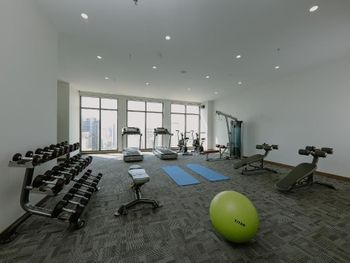 Фитнес-зал на 20 этаже чистый, и его убирают каждый день.