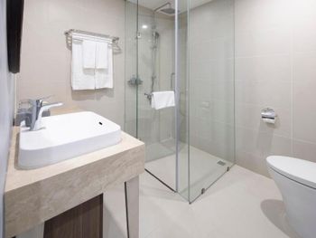 Прекрасный отель. Огромный номер. Рядом есть выбор кафе, массажей, до моря близко. Азиатский завтрак. В дождь можно взять зонты.