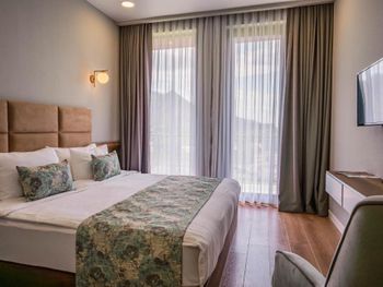 Интерьер новенький, чистый и красивый. Удобные кровати и кресла в номере. Комфортный балкон. Огромный бассейн с подсветкой, удобные лежаки. Отличная сухая сауна. Идея с хаммамом отличная, но в нем должно бы быть потеплее Теоретически, бесплатная дегустация вина - это плюс...