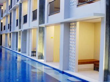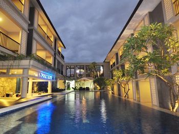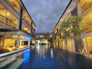 Близко к аэропорту Денпасара. Отличный персонал. Есть своя крытая парковка, было где оставить байк. Магазины и рестораны рядом не смотрел, ездил в Bali Mal, на байке ехать 5-7 минут. Пляж рядом, наверно 500 метров, но там океан с волнами. Для снорклинга нужно ехать на другую сторону острова.