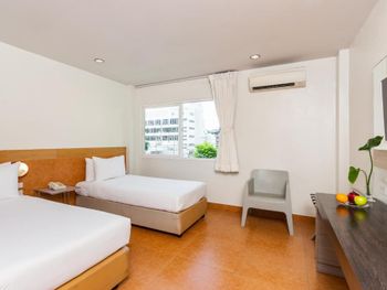Хороший отель с прекрасным расположением в центре. В шаговой доступности торговые центры, набережная, пляж. Возле отеля неплохое кафе с европейской и тайской кухней. Номер просторный с балконом, холодильником и микроволновкой, уборка каждый день, два бассейна.