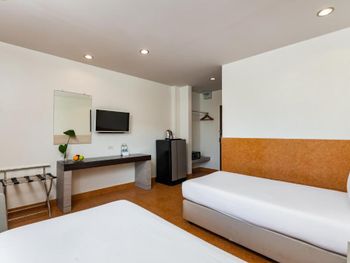Мы бронировали 3-х местный номер Делюкс с тремя отдельными кроватями, то есть это полноценный 3-х местный номер безо всяких дополнительных кроватей-раскладушек, который изначально рассчитан на проживание в нём 3-х человек. При этом в номере посуда рассчитана только на двоих: 2 кружки, 2 глубокие чашки, 2 тарелки, 2 ложки, 2 вилки.. И соответственно ежедневно пополняют одноразовый чай - кофе, сливки, сахар тоже только на 2-х... Мелочь, конечно, но как-то непонятно, ведь оплачен номер для проживания 3-х человек. Так же в номере предоставлены тапочки только для 2-х, и есть только два стула. Хорошо, хоть воду ставили для всех и полотенца меняли. Кстати, по поводу полотенец, почему-то предоставляются только большие для ванны. Маленькие для лица вообще отсутствуют, в этом большой минус. Если не обращать внимания на такие детали, то в целом отель рекомендую для проживания.